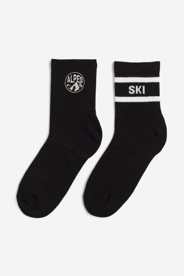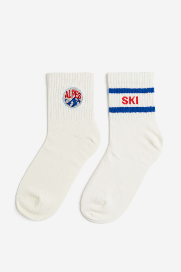 Socks in a soft, fine-knit cotton blend with a ribbed shaft and elasticated tops to keep them in place.